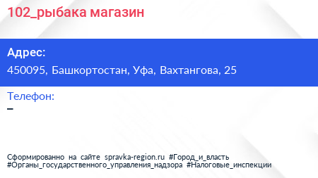 102_рыбака, магазин по адресу 450095, Башкортостан, Уфа, Вахтангова, 25 в дальнейшем Организация, размещена в следующих категориях: