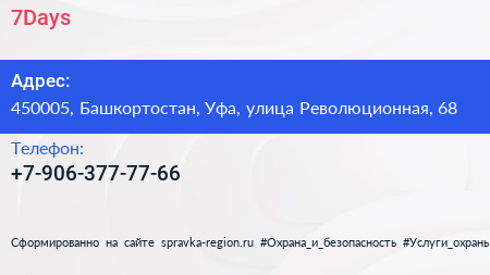 7Days по адресу 450005, Башкортостан, Уфа, улица Революционная, 68 в дальнейшем Организация, размещена в следующих категориях: