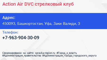 Action Air DVC, стрелковый клуб по адресу 450093, Башкортостан, Уфа, Заки Валиди, 3 в дальнейшем Организация, размещена в следующих категориях: