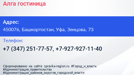 Алга, гостиница по адресу 450076, Башкортостан, Уфа, Зенцова, 73 в дальнейшем Организация, размещена в следующих категориях: