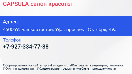 CAPSULA, салон красоты по адресу 450059, Башкортостан, Уфа, проспект Октября, 49а в дальнейшем Организация, размещена в следующих категориях: