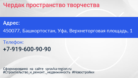Чердак, пространство творчества по адресу 450077, Башкортостан, Уфа, Верхнеторговая площадь, 1 в дальнейшем Организация, размещена в следующих категориях: