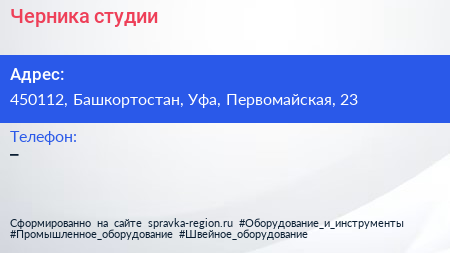 Черника, студии по адресу 450112, Башкортостан, Уфа, Первомайская, 23 в дальнейшем Организация, размещена в следующих категориях: