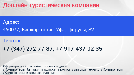 Доплайн, туристическая компания по адресу 450077, Башкортостан, Уфа, Цюрупы, 82 в дальнейшем Организация, размещена в следующих категориях: