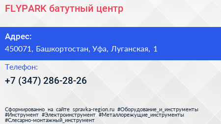 FLYPARK, батутный центр по адресу 450071, Башкортостан, Уфа, Луганская, 1 в дальнейшем Организация, размещена в следующих категориях: