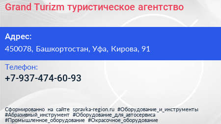 Grand Turizm, туристическое агентство по адресу 450078, Башкортостан, Уфа, Кирова, 91 в дальнейшем Организация, размещена в следующих категориях: