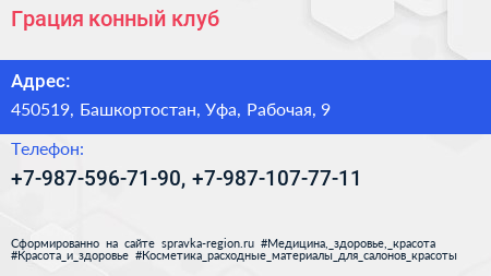 Грация, конный клуб по адресу 450519, Башкортостан, Уфа, Рабочая, 9 в дальнейшем Организация, размещена в следующих категориях:
