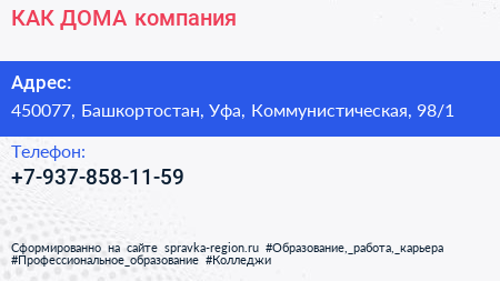 КАК ДОМА, компания по адресу 450077, Башкортостан, Уфа, Коммунистическая, 98/1 в дальнейшем Организация, размещена в следующих категориях: