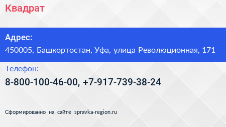 Квадрат по адресу 450005, Башкортостан, Уфа, улица Революционная, 171 в дальнейшем Организация, размещена в следующих категориях: