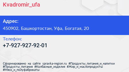 Kvadromir_ufa по адресу 450902, Башкортостан, Уфа, Богатая, 20 в дальнейшем Организация, размещена в следующих категориях: