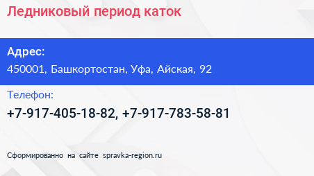 Ледниковый период, каток по адресу 450001, Башкортостан, Уфа, Айская, 92 в дальнейшем Организация, размещена в следующих категориях: