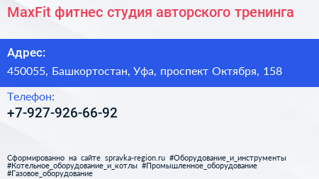 MaxFit, фитнес-студия авторского тренинга по адресу 450055, Башкортостан, Уфа, проспект Октября, 158 в дальнейшем Организация, размещена в следующих категориях: