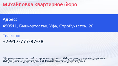 Михайловка, квартирное бюро по адресу 450511, Башкортостан, Уфа, Стройучасток, 20 в дальнейшем Организация, размещена в следующих категориях: