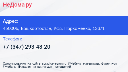 НеДома.ру по адресу 450006, Башкортостан, Уфа, Пархоменко, 133/1 в дальнейшем Организация, размещена в следующих категориях: