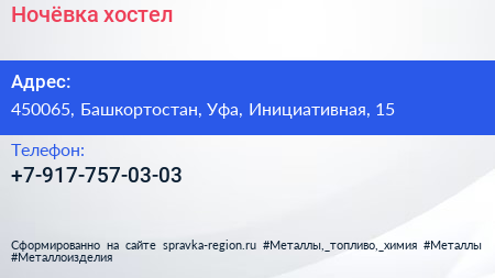 Ночёвка, хостел по адресу 450065, Башкортостан, Уфа, Инициативная, 15 в дальнейшем Организация, размещена в следующих категориях: