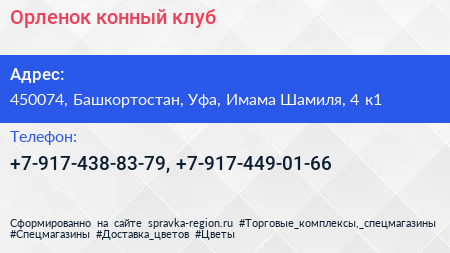 Орлeнок, конный клуб по адресу 450074, Башкортостан, Уфа, Имама Шамиля, 4 к1 в дальнейшем Организация, размещена в следующих категориях: