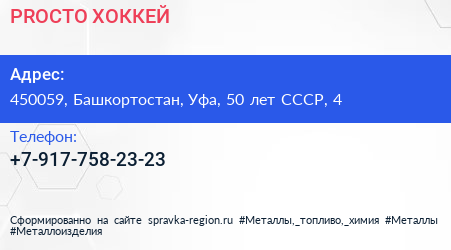 PROСТО ХОККЕЙ по адресу 450059, Башкортостан, Уфа, 50 лет СССР, 4 в дальнейшем Организация, размещена в следующих категориях: