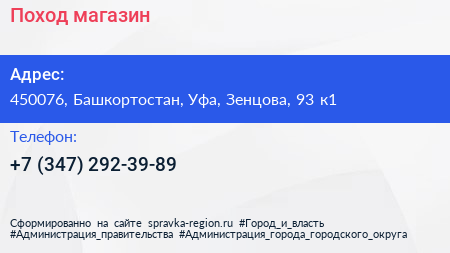 Поход, магазин по адресу 450076, Башкортостан, Уфа, Зенцова, 93 к1 в дальнейшем Организация, размещена в следующих категориях:
