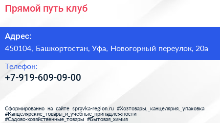 Прямой путь, клуб по адресу 450104, Башкортостан, Уфа, Новогорный переулок, 20а в дальнейшем Организация, размещена в следующих категориях: