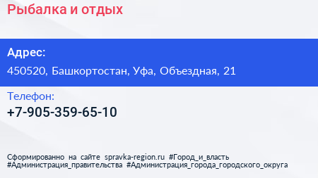 Рыбалка и отдых по адресу 450520, Башкортостан, Уфа, Объездная, 21 в дальнейшем Организация, размещена в следующих категориях: