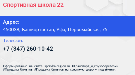 Спортивная школа №22 по адресу 450038, Башкортостан, Уфа, Первомайская, 75 в дальнейшем Организация, размещена в следующих категориях: