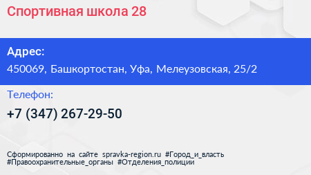 Спортивная школа №28 по адресу 450069, Башкортостан, Уфа, Мелеузовская, 25/2 в дальнейшем Организация, размещена в следующих категориях: