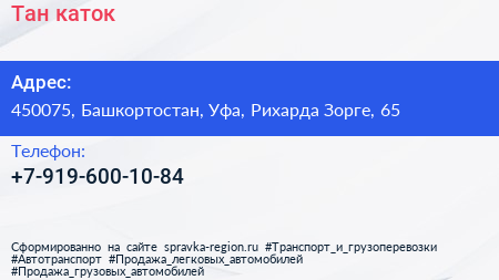 Тан, каток по адресу 450075, Башкортостан, Уфа, Рихарда Зорге, 65 в дальнейшем Организация, размещена в следующих категориях: