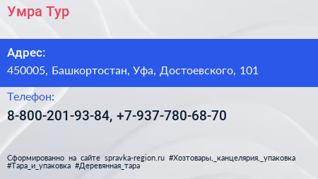Умра Тур по адресу 450005, Башкортостан, Уфа, Достоевского, 101 в дальнейшем Организация, размещена в следующих категориях:
