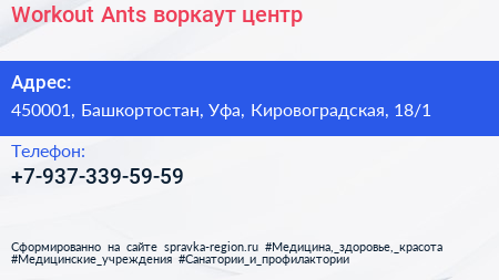 Workout Ants, воркаут-центр по адресу 450001, Башкортостан, Уфа, Кировоградская, 18/1 в дальнейшем Организация, размещена в следующих категориях: