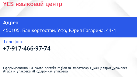 YES, языковой центр по адресу 450105, Башкортостан, Уфа, Юрия Гагарина, 44/1 в дальнейшем Организация, размещена в следующих категориях: