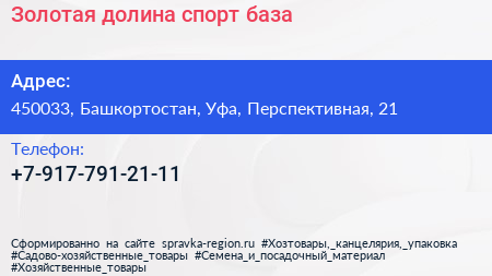 Золотая долина, спорт-база по адресу 450033, Башкортостан, Уфа, Перспективная, 21 в дальнейшем Организация, размещена в следующих категориях: