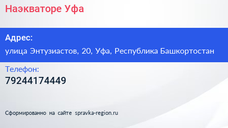 Наэкваторе Уфа по адресу улица Энтузиастов, 20, Уфа, Республика Башкортостан в дальнейшем Организация, размещена в следующих категориях:
