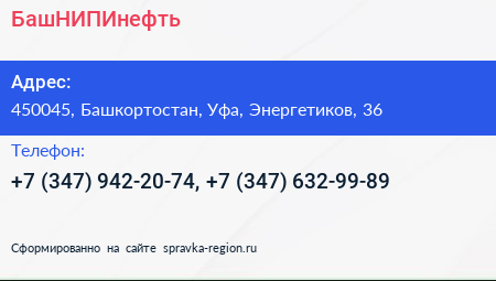 БашНИПИнефть по адресу 450045, Башкортостан, Уфа, Энергетиков, 36 в дальнейшем Организация, размещена в следующих категориях: