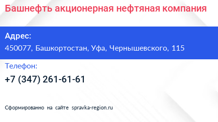 Башнефть, акционерная нефтяная компания по адресу 450077, Башкортостан, Уфа, Чернышевского, 115 в дальнейшем Организация, размещена в следующих категориях:
