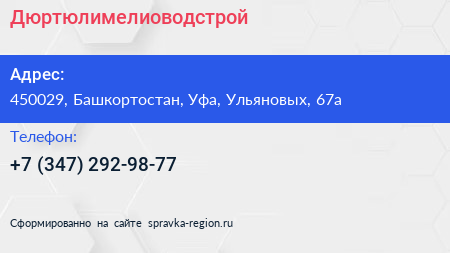 Дюртюлимелиоводстрой по адресу 450029, Башкортостан, Уфа, Ульяновых, 67а в дальнейшем Организация, размещена в следующих категориях: