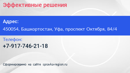 Эффективные решения по адресу 450054, Башкортостан, Уфа, проспект Октября, 84/4 в дальнейшем Организация, размещена в следующих категориях: