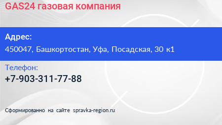 GAS24, газовая компания по адресу 450047, Башкортостан, Уфа, Посадская, 30 к1 в дальнейшем Организация, размещена в следующих категориях: