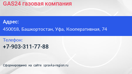 GAS24, газовая компания по адресу 450018, Башкортостан, Уфа, Кооперативная, 74 в дальнейшем Организация, размещена в следующих категориях: