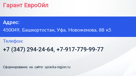 Гарант ЕвроОйл по адресу 450049, Башкортостан, Уфа, Новоженова, 88 к5 в дальнейшем Организация, размещена в следующих категориях: