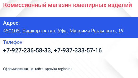 Комиссионный магазин ювелирных изделий по адресу 450105, Башкортостан, Уфа, Максима Рыльского, 19 в дальнейшем Организация, размещена в следующих категориях: