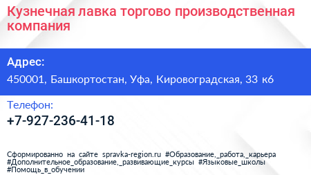 Кузнечная лавка, торгово-производственная компания по адресу 450001, Башкортостан, Уфа, Кировоградская, 33 к6 в дальнейшем Организация, размещена в следующих категориях: