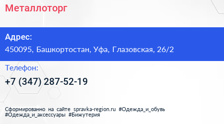 Металлоторг по адресу 450095, Башкортостан, Уфа, Глазовская, 26/2 в дальнейшем Организация, размещена в следующих категориях: