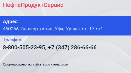 НефтеПродуктСервис по адресу 450056, Башкортостан, Уфа, Уршак ст, 17 ст1 в дальнейшем Организация, размещена в следующих категориях: