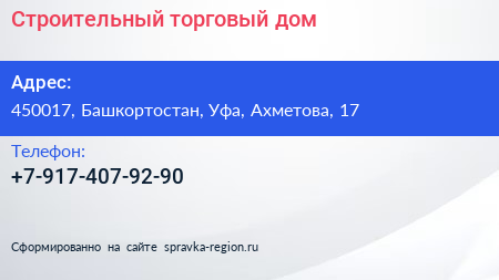 Строительный, торговый дом по адресу 450017, Башкортостан, Уфа, Ахметова, 17 в дальнейшем Организация, размещена в следующих категориях: