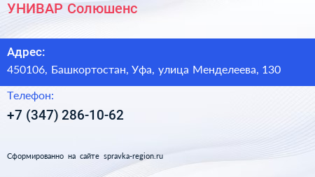 УНИВАР Солюшенс по адресу 450106, Башкортостан, Уфа, улица Менделеева, 130 в дальнейшем Организация, размещена в следующих категориях: