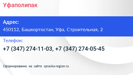 Уфаполипак по адресу 450112, Башкортостан, Уфа, Строительная, 2 в дальнейшем Организация, размещена в следующих категориях: