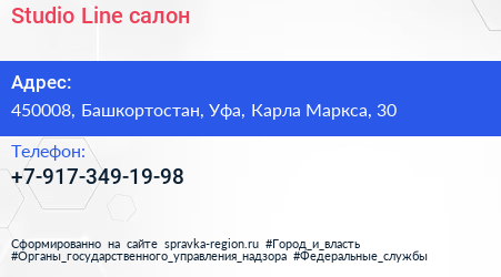 Studio-Line, салон по адресу 450008, Башкортостан, Уфа, Карла Маркса, 30 в дальнейшем Организация, размещена в следующих категориях: