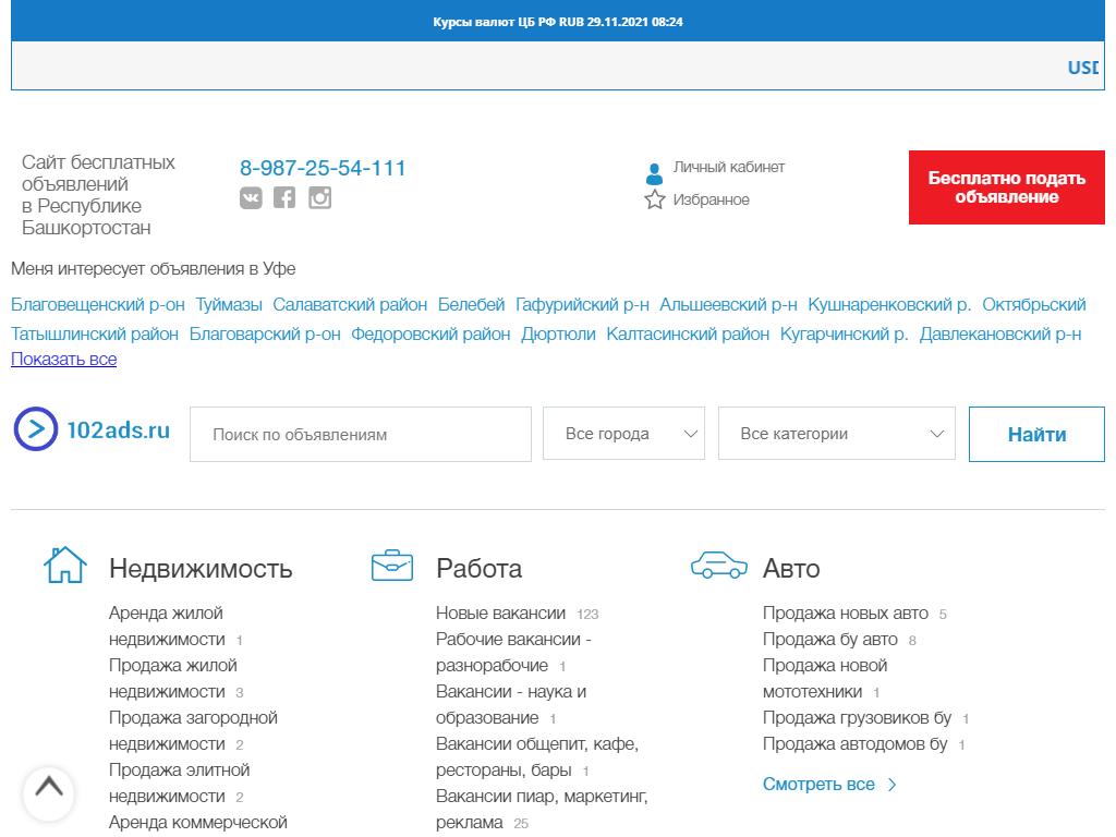 102ads.ru, сайт бесплатных объявлений по адресу 450112, Башкортостан, Уфа, Первомайская, 31 в дальнейшем Организация, размещена в следующих категориях: