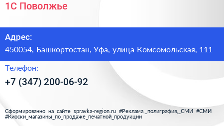 1С-Поволжье по адресу 450054, Башкортостан, Уфа, улица Комсомольская, 111 в дальнейшем Организация, размещена в следующих категориях: