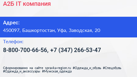 А2Б, IT-компания по адресу 450097, Башкортостан, Уфа, Заводская, 20 в дальнейшем Организация, размещена в следующих категориях: